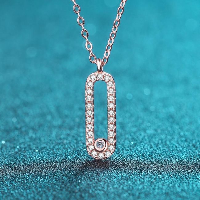 925 Silver Oval Moissanite Pendant Necklace with Geometric Design in Rose Gold or White Gold Plating