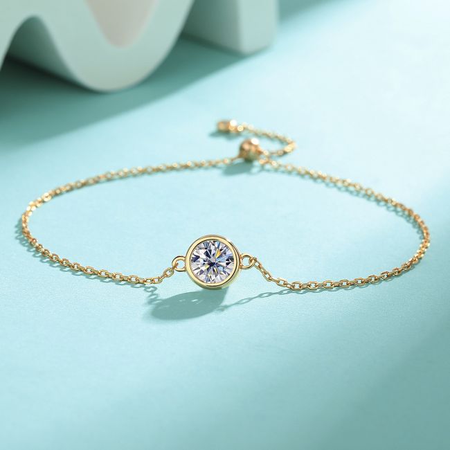 Bracelet Adjustable 925 Sterling Silver Round Bezel Colorful Moissanite Elegant Chain