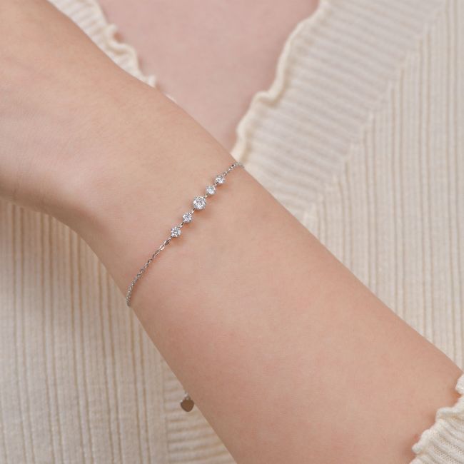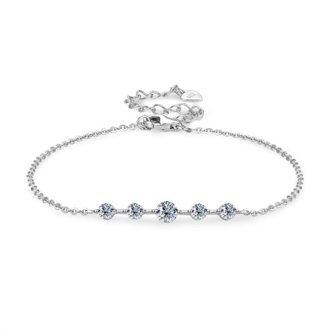 Bracelet 925 Sterling Silver Five Stone Moissanite Chain Bracelet with Adjustable Clasp