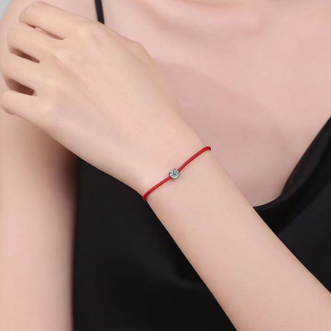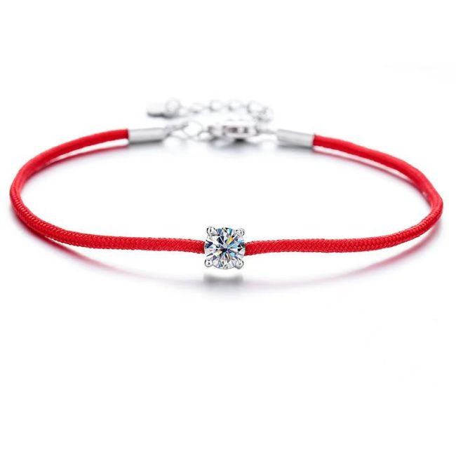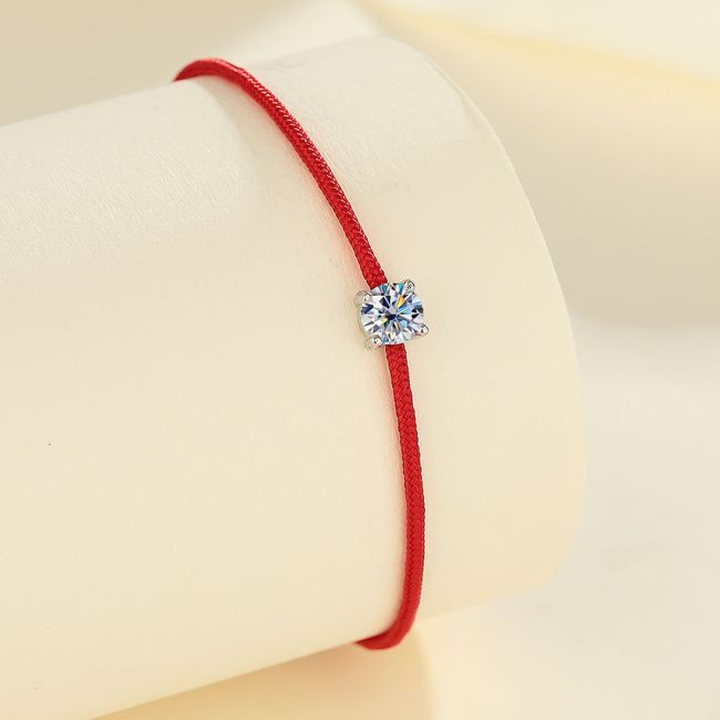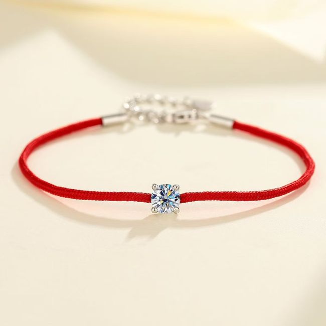 Bracelet - 925 Sterling Silver Moissanite Red Cord Adjustable Bracelet with 0.5 Carat Stone
