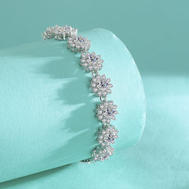 Bracelet - Sterling Silver Moissanite Cross Flower Design Sparkling Luxury Chain Bracelet