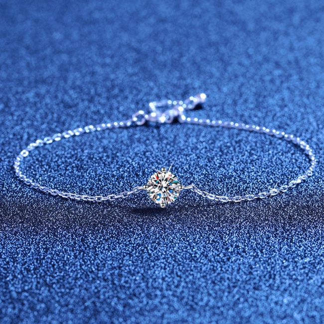 Bracelet Adjustable Four Prong Solitaire Moissanite Chain Bracelet with Brilliant Cut Stone