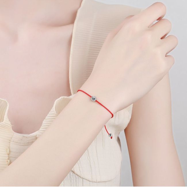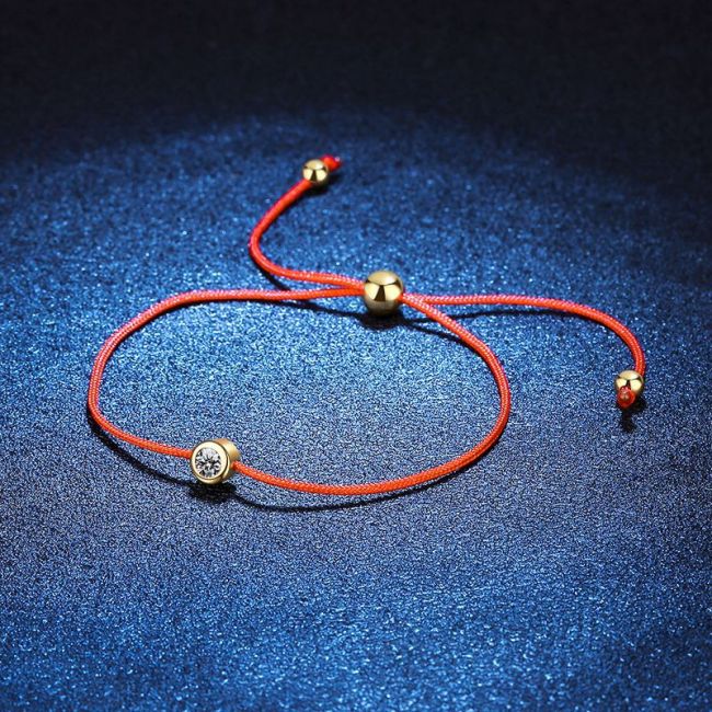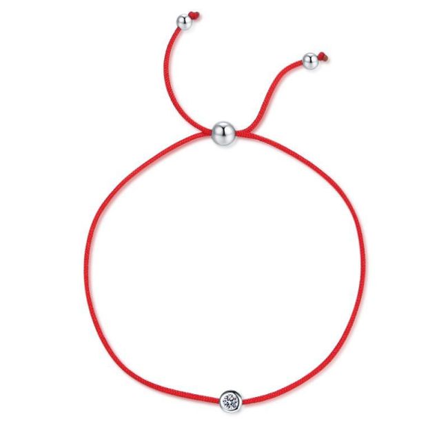 - Design: Minimalist red cord bracelet featuring a single bezel-set moissanite stone