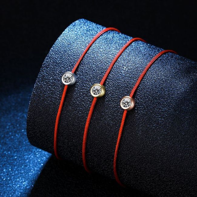 - Design: Minimalist red cord bracelet featuring a single bezel-set moissanite stone