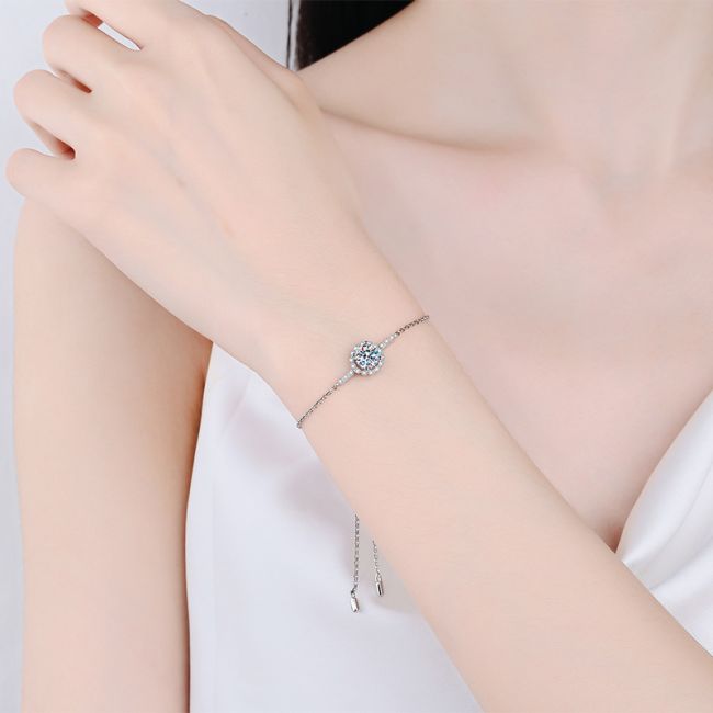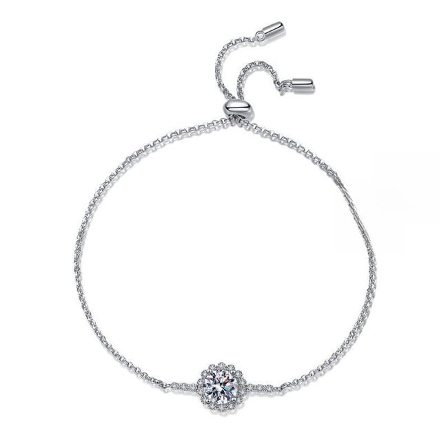 Bracelet Adjustable Sterling Silver Daisy Halo Moissanite Chain Bracelet with Platinum Plating
