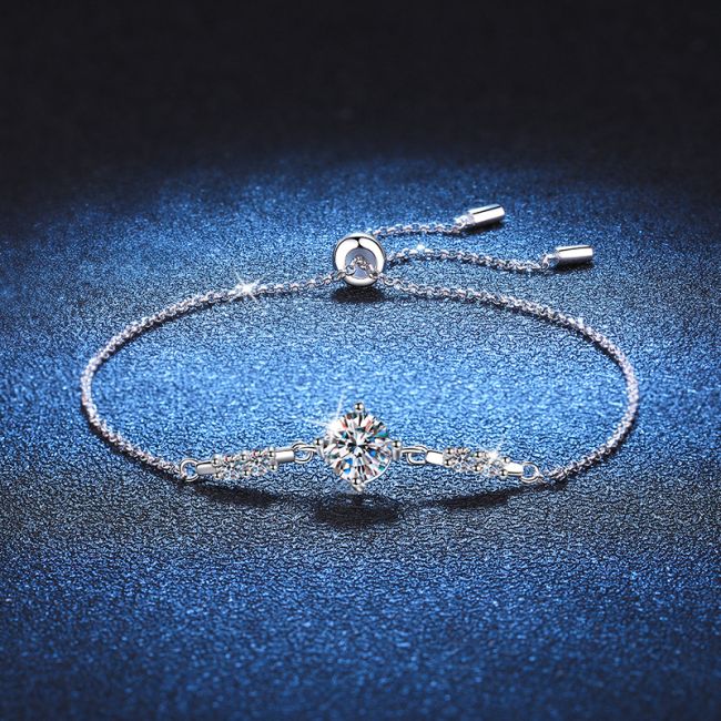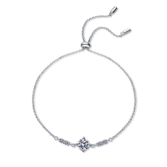 Bracelet Adjustable Sterling Silver Four-Prong Moissanite Chain Bracelet with Slider Clasp