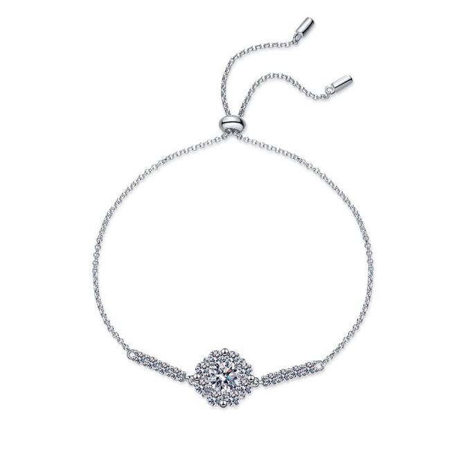 Bracelet Adjustable Sterling Silver Four-Prong Moissanite Chain Bracelet with Slider Clasp