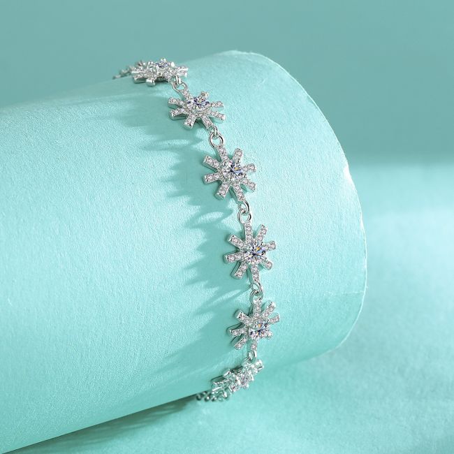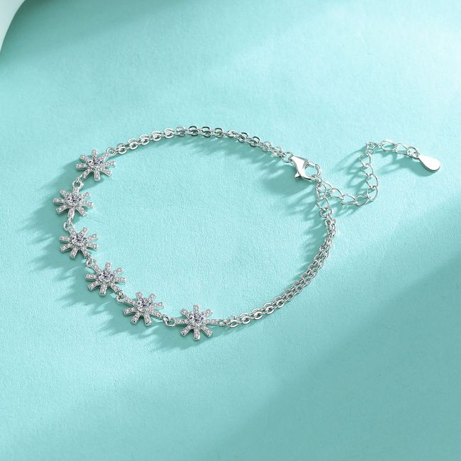 Bracelet - Sterling Silver Moissanite Cross Flower Design Sparkling Luxury Chain Bracelet