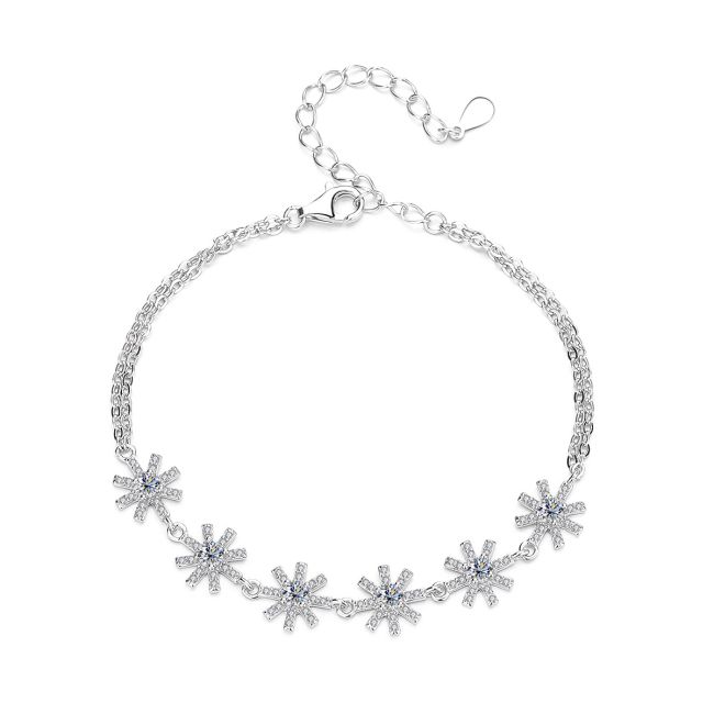 Bracelet - Double Layer Eight-Pointed Star Moissanite Sterling Silver Chain Bracelet