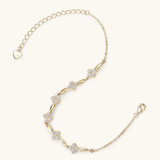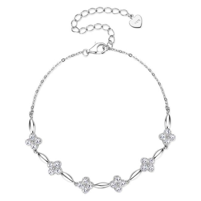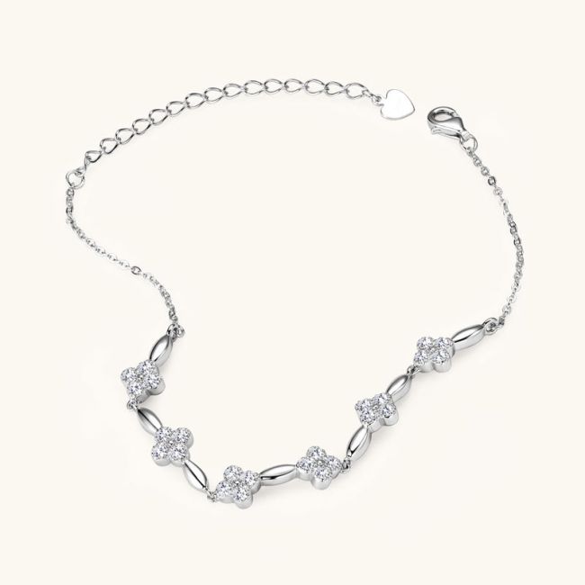 Bracelet Elegant Four Leaf Clover Moissanite Chain Bracelet S925 Sterling Silver Adjustable Jewelry