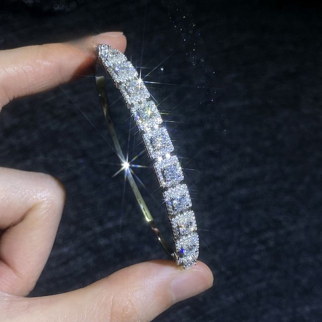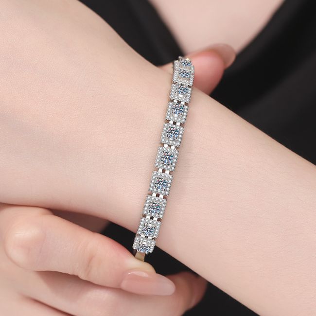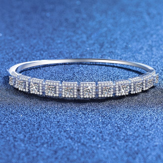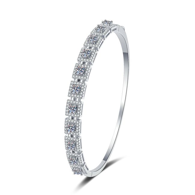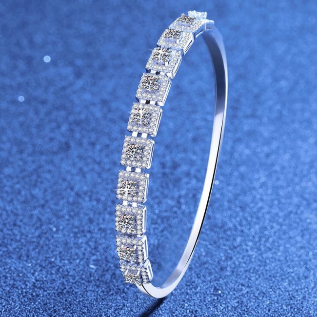 Bracelet Luxury Moissanite Bangle Sterling Silver Square Halo Design with Pave Setting