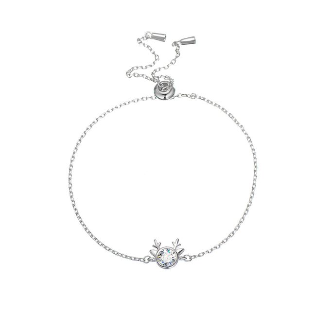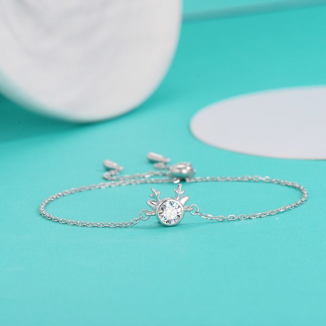 Bracelet - Minimalist Deer Head Moissanite Sterling Silver Chain Bracelet