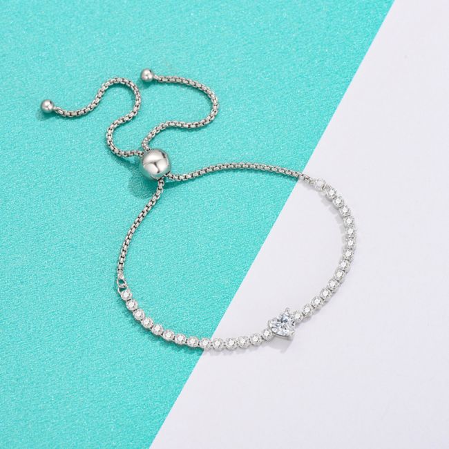 Bracelet - Minimalist Sterling Silver Moissanite Chain Bracelet for Women