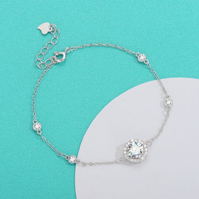 Bracelet - S925 Sterling Silver Minimalist Moissanite Chain Bracelet for Women