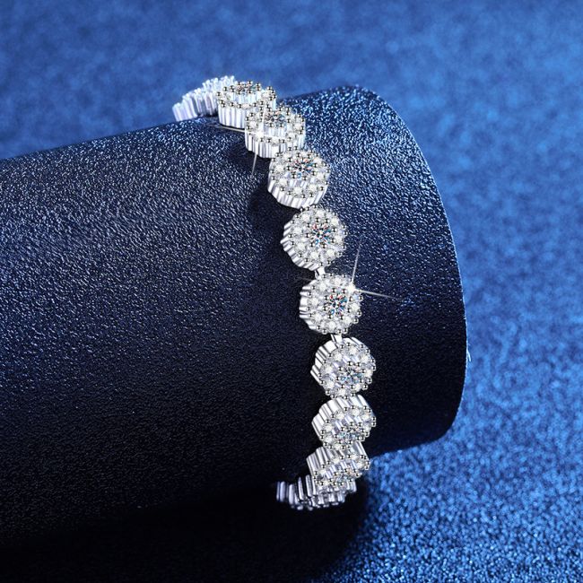 Bracelet Moissanite Sunflower Sterling Silver Tennis Bracelet with Brilliant Cut Stones