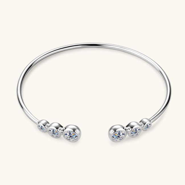 Bracelet Open Cuff Moissanite Sterling Silver Bangle with Bezel Set Stones