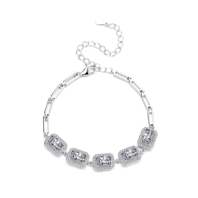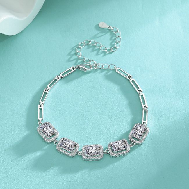 Bracelet - Sterling Silver Square Moissanite Tennis Bracelet Luxury Fashion Jewelry
