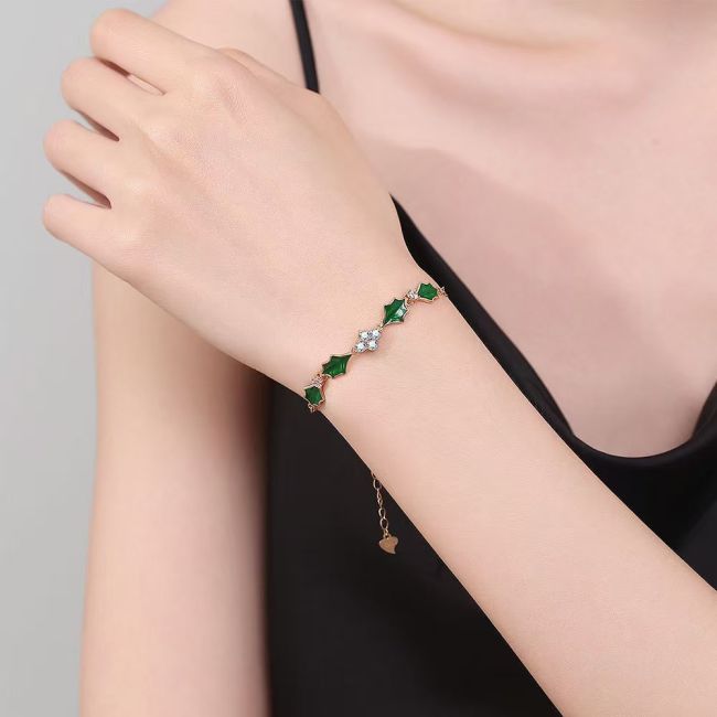 Bracelet S925 Sterling Silver Moissanite Leaf Design Elegant Fashion Jewelry for Women