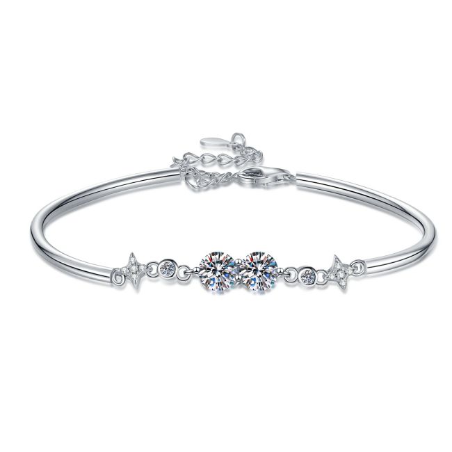 Bracelet - Sterling Silver Adjustable Bangle with Twin Moissanite Stones and Star Accents