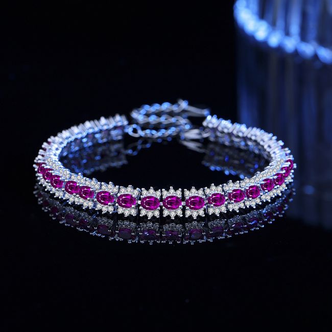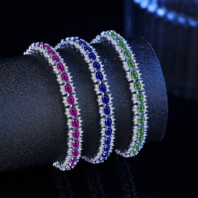 Bracelet Sterling Silver Colorful Cubic Zirconia Crystal Chain Elegant Women's Jewelry