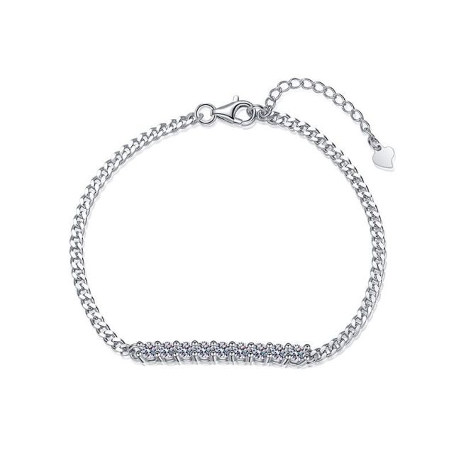 Bracelet Sterling Silver Solitaire Moissanite Chain Bracelet with Platinum Plating