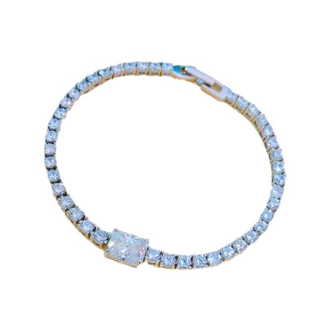 Bracelet Sterling Silver Emerald Cut Zirconia Tennis Chain Minimalist Luxury Design