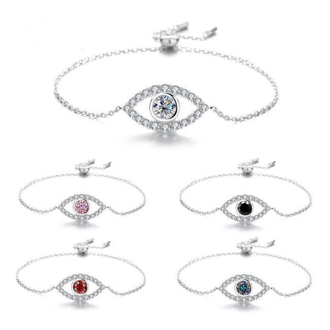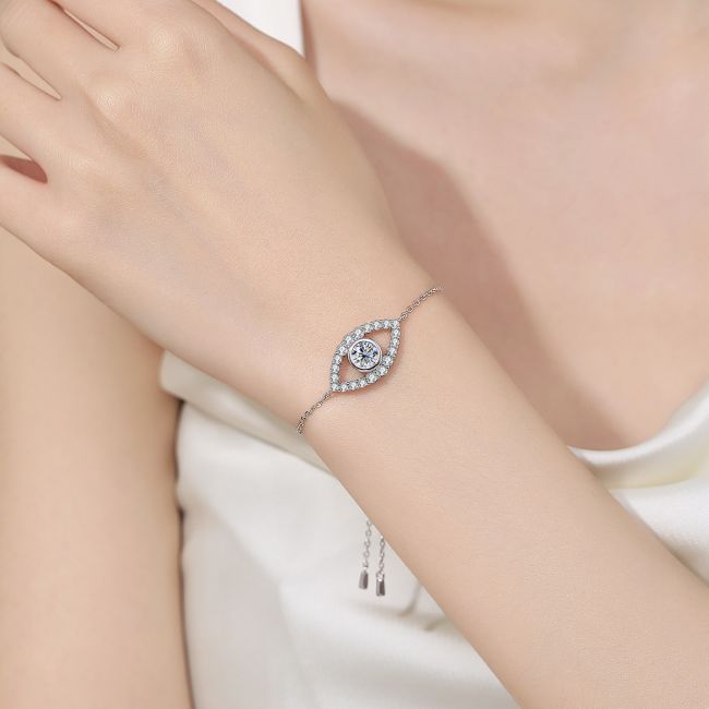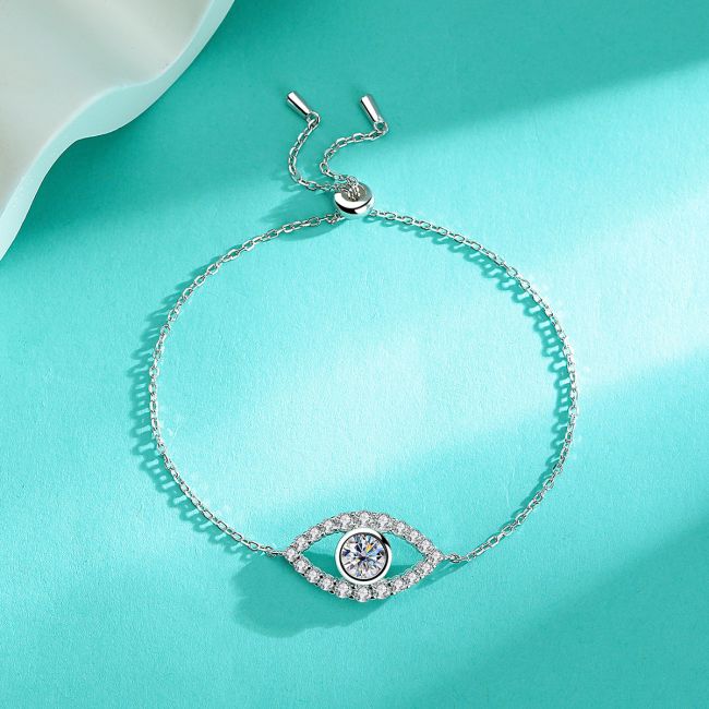 Bracelet - Sterling Silver Evil Eye Moissanite Chain Bracelet Minimalist Luxury Design