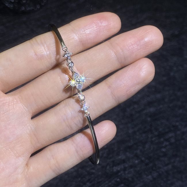 - Color: Polished silver finish with clear sparkling stones