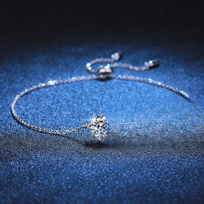 Bracelet Sterling Silver Four Prong Moissanite Solitaire Adjustable Chain Bracelet