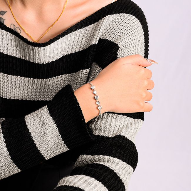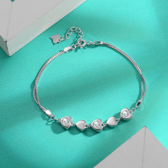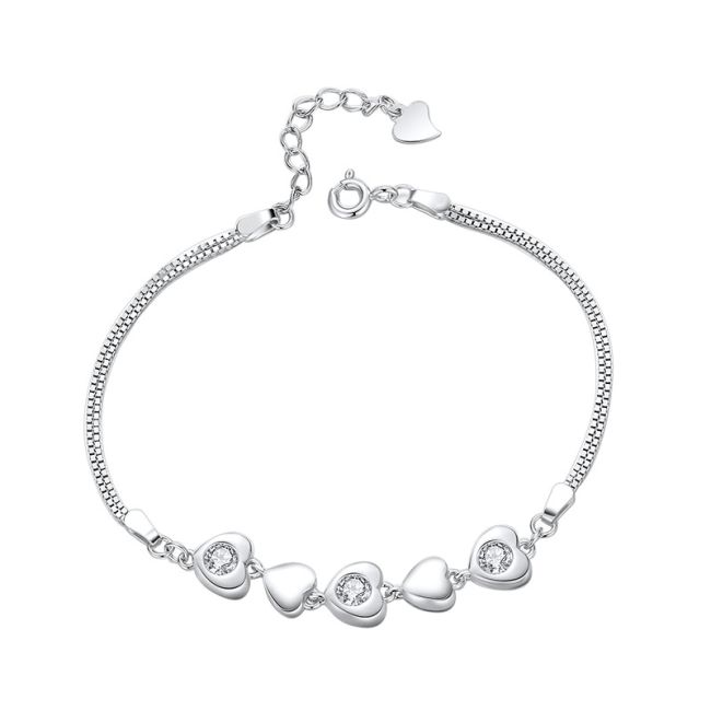 Bracelet Sterling Silver Heart Chain with Three Moissanite Stones Minimalist Design