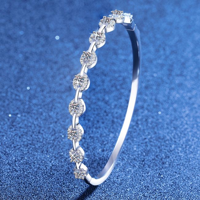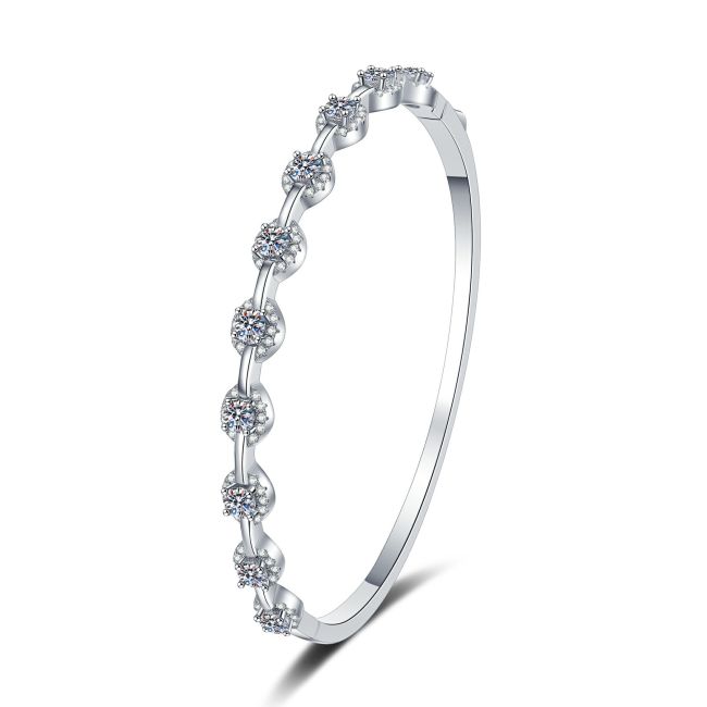 Bracelet Sterling Silver Moissanite Bangle with Hollow Link Design and Sparkling Stone Accents