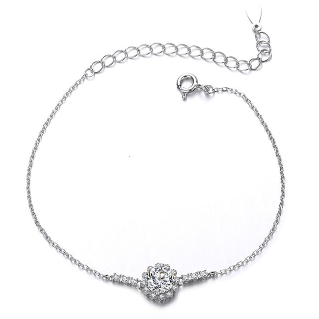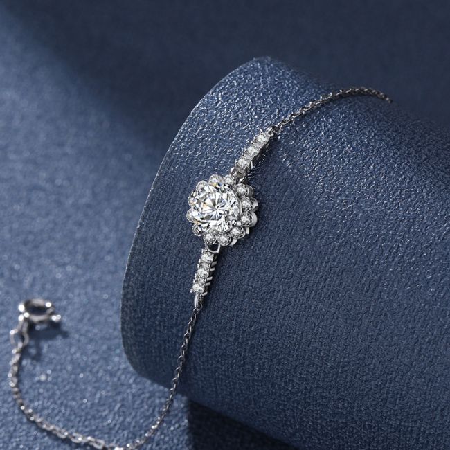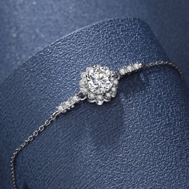 Bracelet Sterling Silver Moissanite Flower Bud Design with Hearts and Arrows Cut