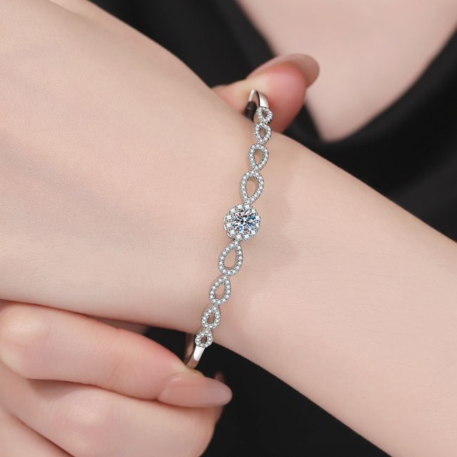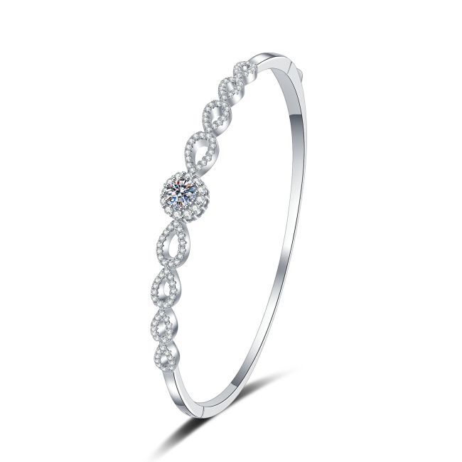 Bracelet Sterling Silver Moissanite Infinity Loop Bangle with Center Stone Accent