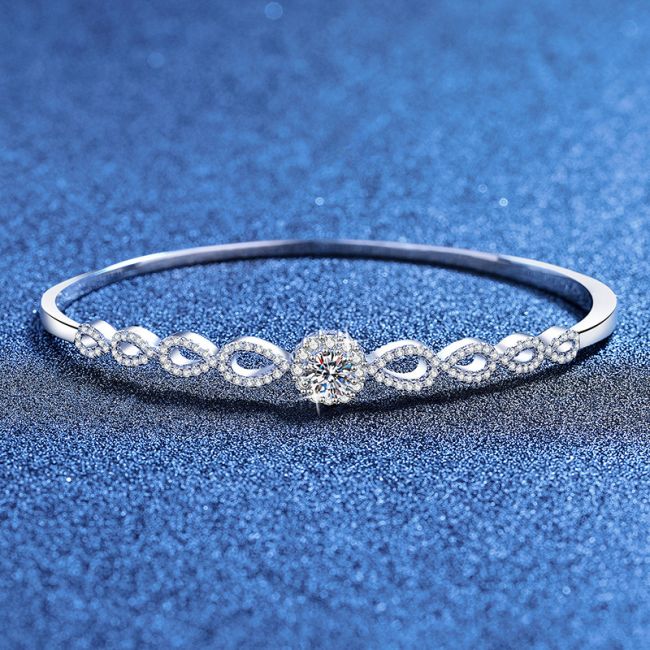 Bracelet Sterling Silver Moissanite Infinity Loop Bangle with Center Stone Accent