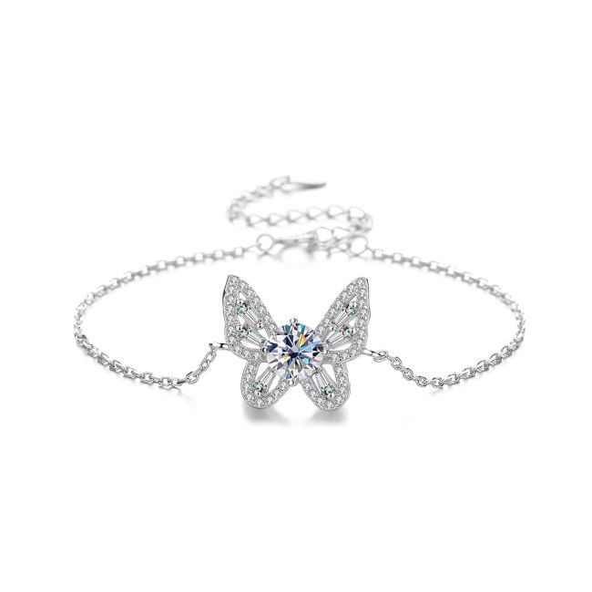 Bracelet - Sterling Silver S925 Moissanite Butterfly Deluxe Chain Bracelet