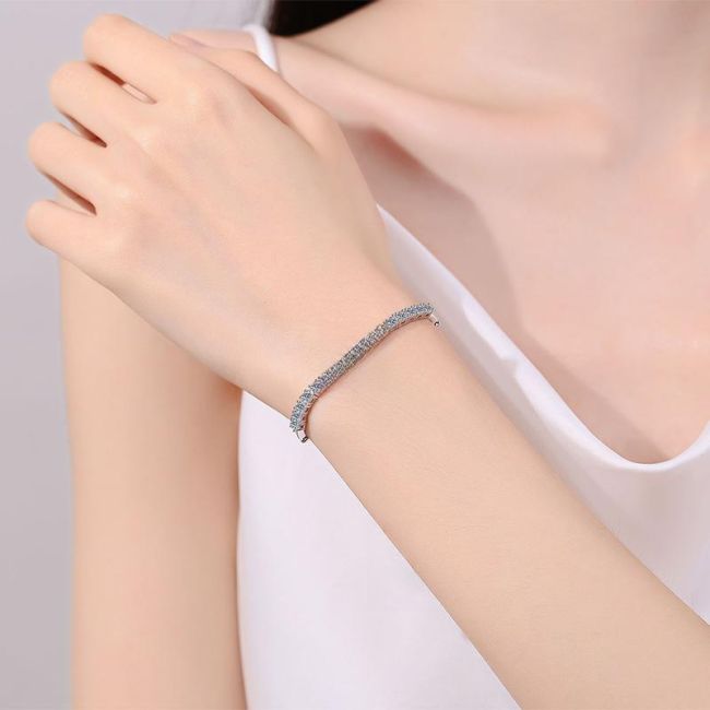 Bracelet with Handcrafted S925 Sterling Silver and 2.4 Carat Moissanite Round Row Diamonds in a Minimalist Starry Sky Design