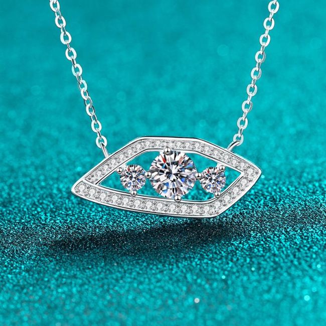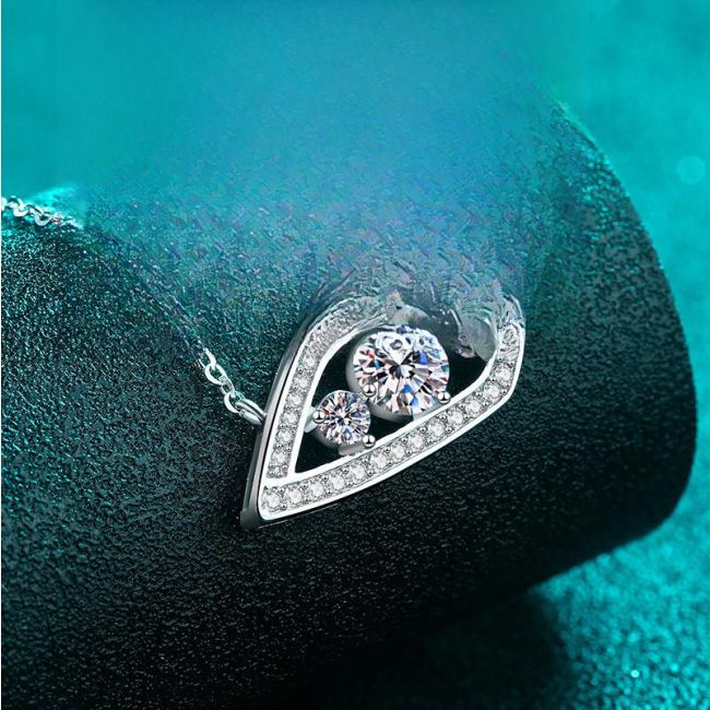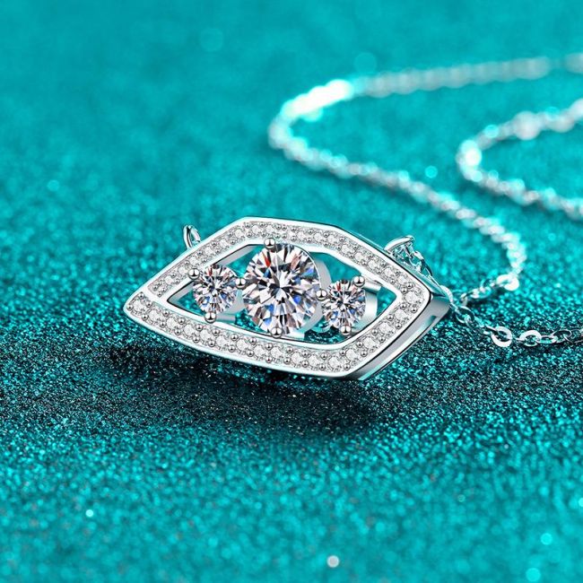 Charm Pendant with Large Moissanite Eye Design and Shell Accents in 925 Sterling Silver