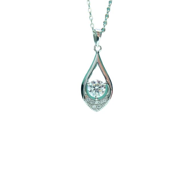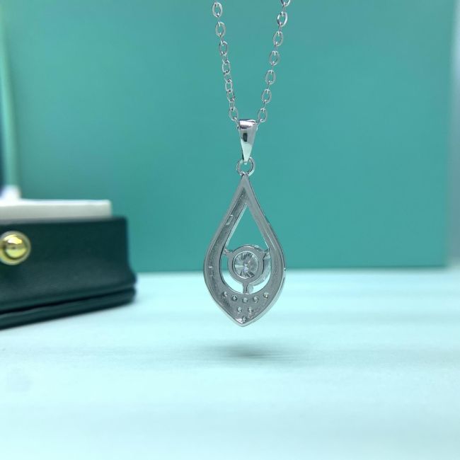 Charm Sterling Silver Moissanite Hollow Teardrop Pendant Necklace for Women