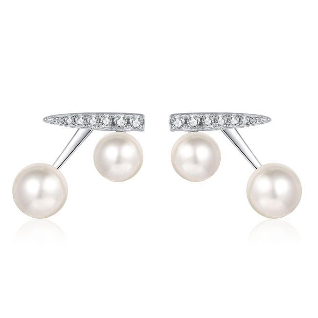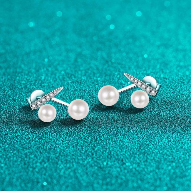 Wave Design Pearl Earrings with Moissanite Accents in Sterling Silver