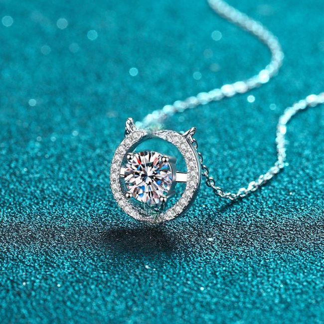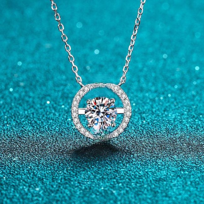 Modern Round Pendant Necklace with 1 Carat Moissanite in Sterling Silver Setting