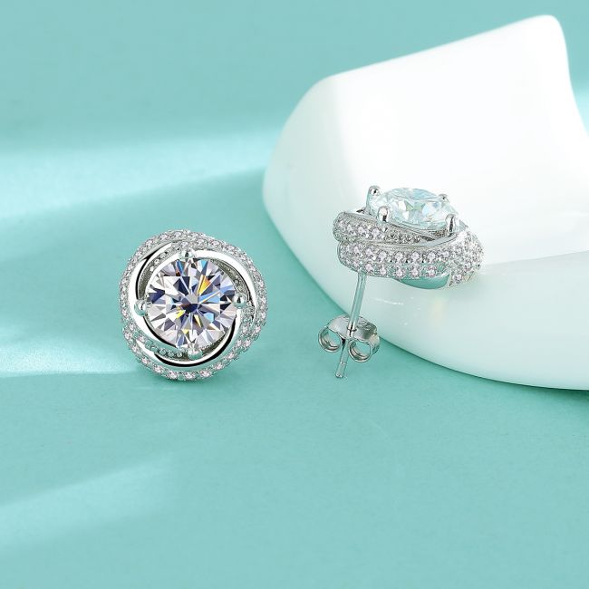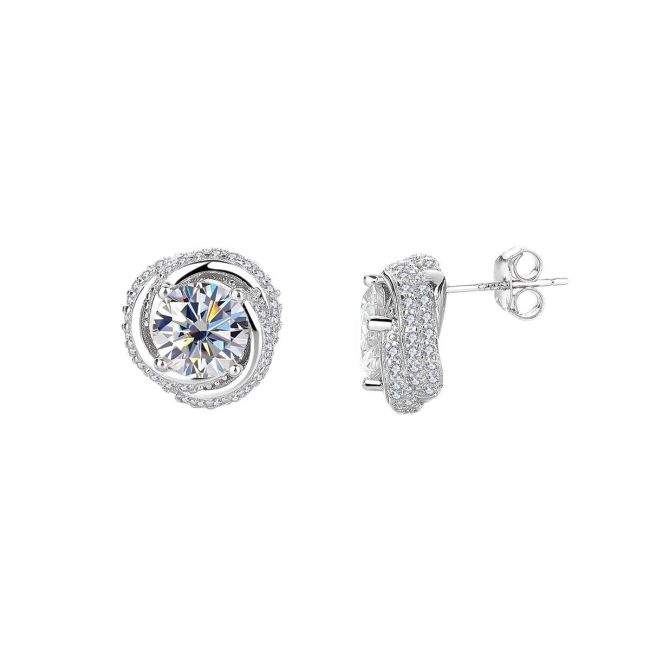 Earrings 925 Silver Spiral Moissanite Three-Ring Stud 2 Carat