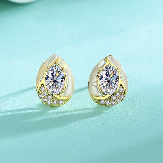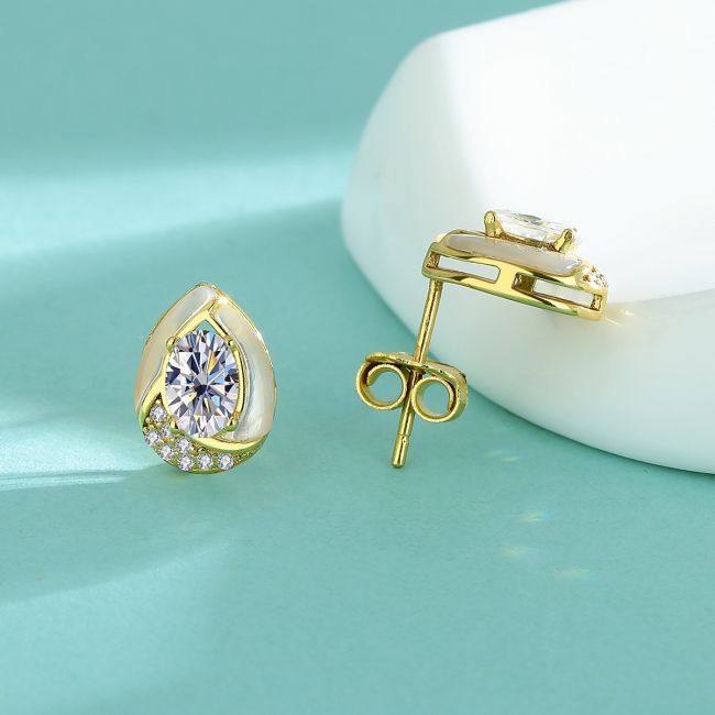 Earrings - 925 Sterling Silver 18K Gold Plated Oval Moissanite Stud Earrings 1 Carat Teardrop