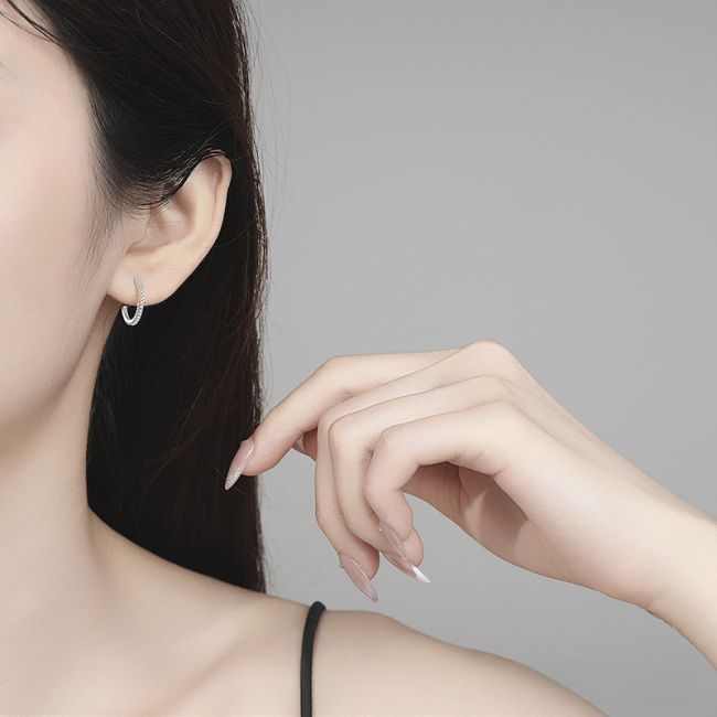 Earrings - 925 Sterling Silver C-Shape Hoop Earrings with Moissanite Stones Minimalist Elegant Design