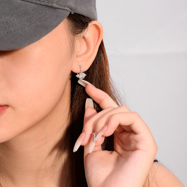 Earrings - Sterling Silver Moissanite Teardrop Stud Earrings with Minimalist Design