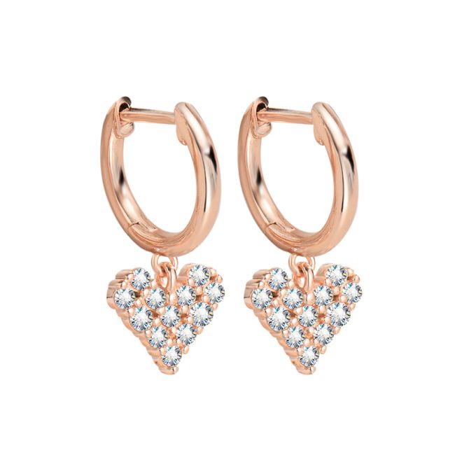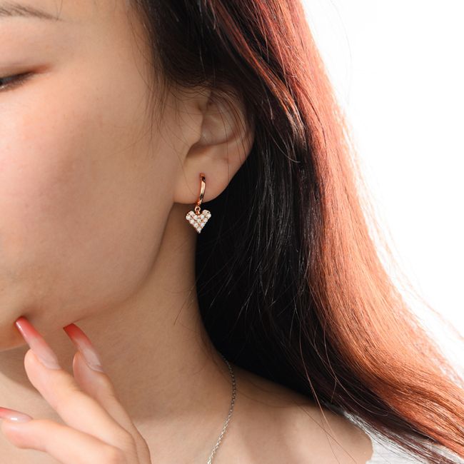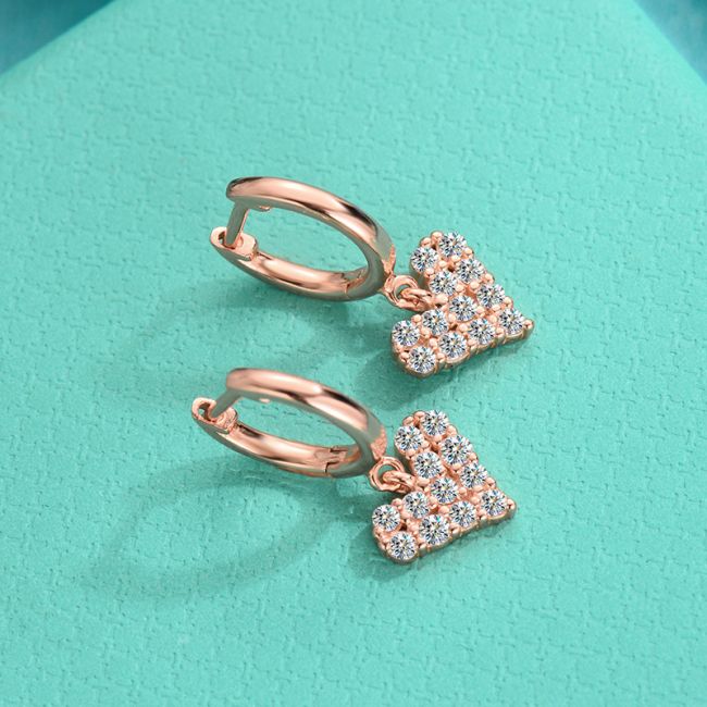 Earrings - 925 Sterling Silver Moissanite Heart Drop Earrings in Rose Gold and Platinum Finish