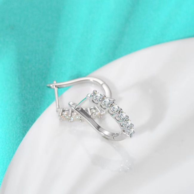 Earrings 925 Sterling Silver Moissanite Hoop Earrings Minimalist Pave Setting Huggie Studs
