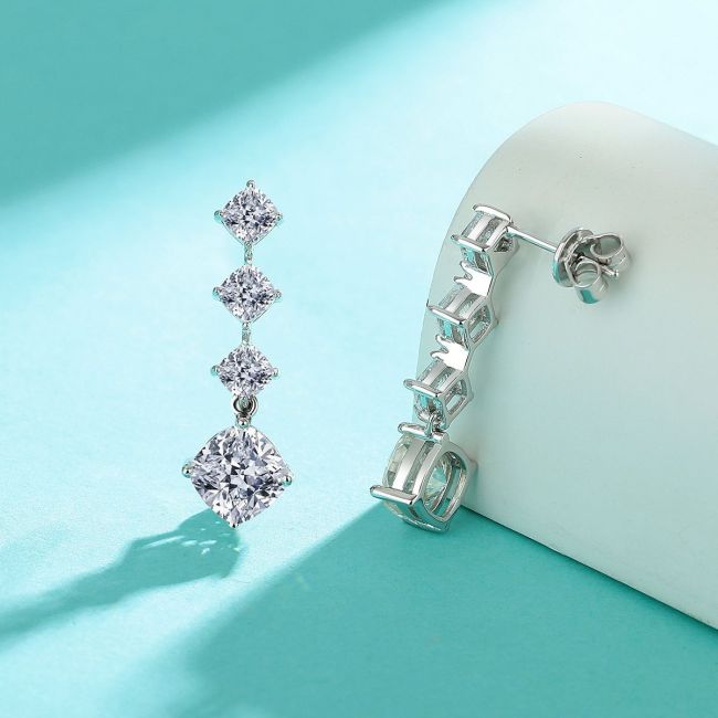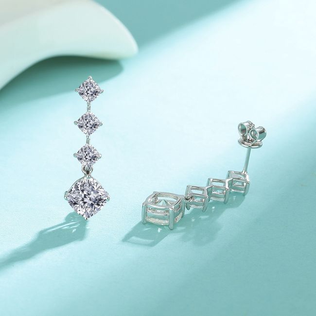 Earrings - 925 Sterling Silver Moissanite Square Stud Earrings Elegant Luxury Design