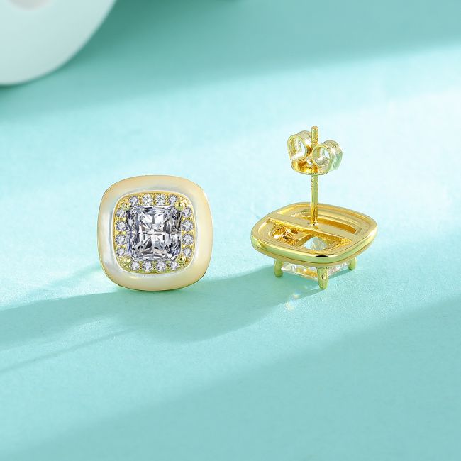Earrings - 925 Sterling Silver Princess Cut Square Moissanite Stud Earrings Minimalist Luxury Design