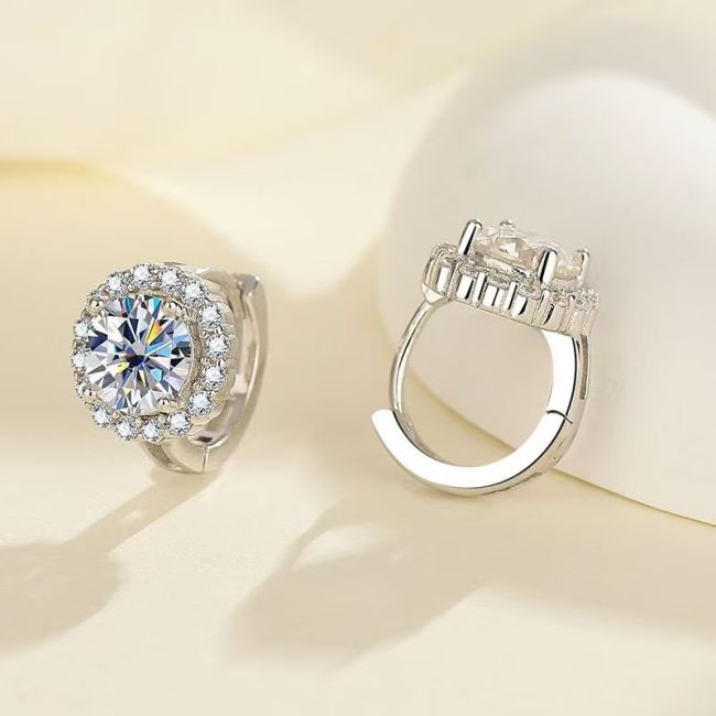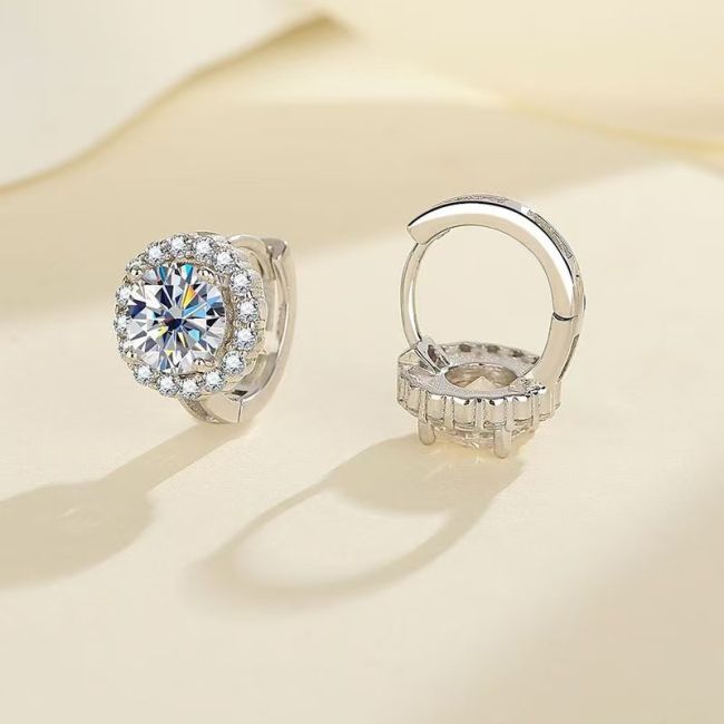 Earrings - 925 Sterling Silver Round Bezel Set Moissanite Stud Earrings 0.5ct to 1ct