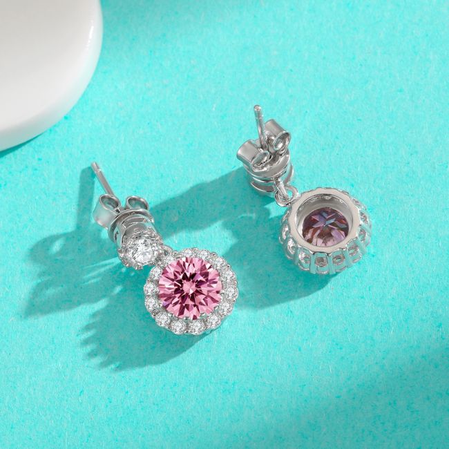 Earrings - 925 Sterling Silver Round Halo Moissanite Stud Earrings with Full Pave Setting